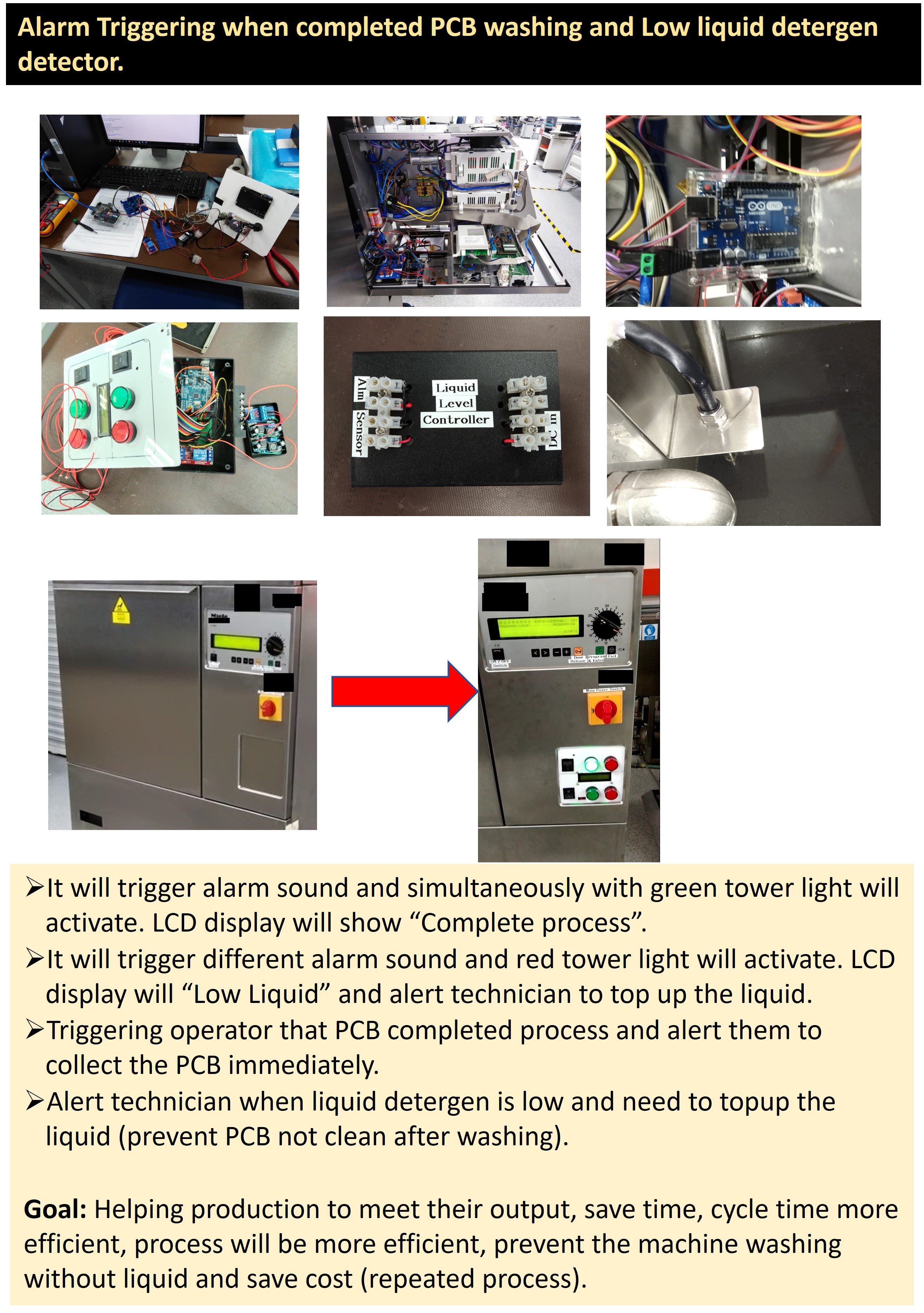 Alarm Triggering when completed PCB washing (Miele G 7823) and Low liquid detergen detected.